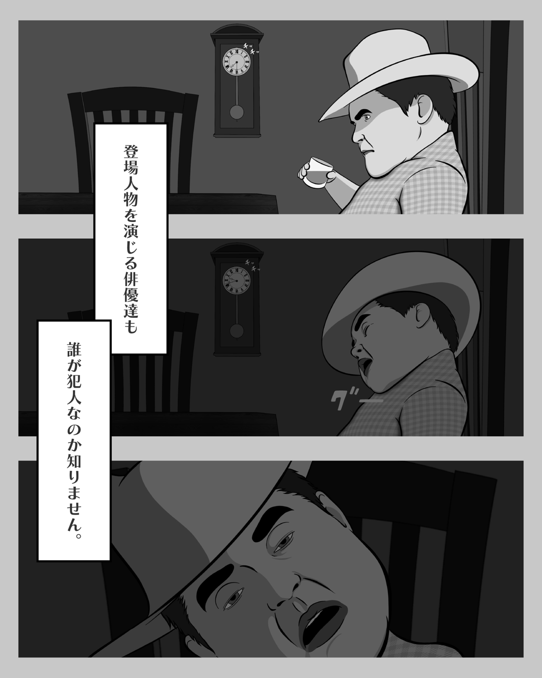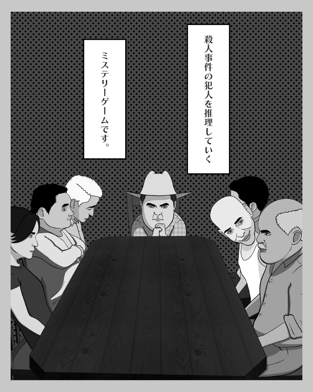 なぜ、日野勝利は死んだのか?殺人なのか?殺人なら警察が来るまで犯人が野放しになる。 この建物には、招待された6人以外の人間が侵入することはほぼ不可能だ。 だとしたら、この6人の中に、日野を殺した犯人がいる。 一同は、昨夜からの行動を追った。 21時まで、日野も入れた7人全員で、食事とワインを楽しんだ。そしてそれぞれの部屋に戻った。 だとしたら、21時から深夜0時の間で殺されたのか? 南瑛人が口を開いた「私たちで犯人を見つけませんか?」その言葉に反論するものは誰もいなかった。
